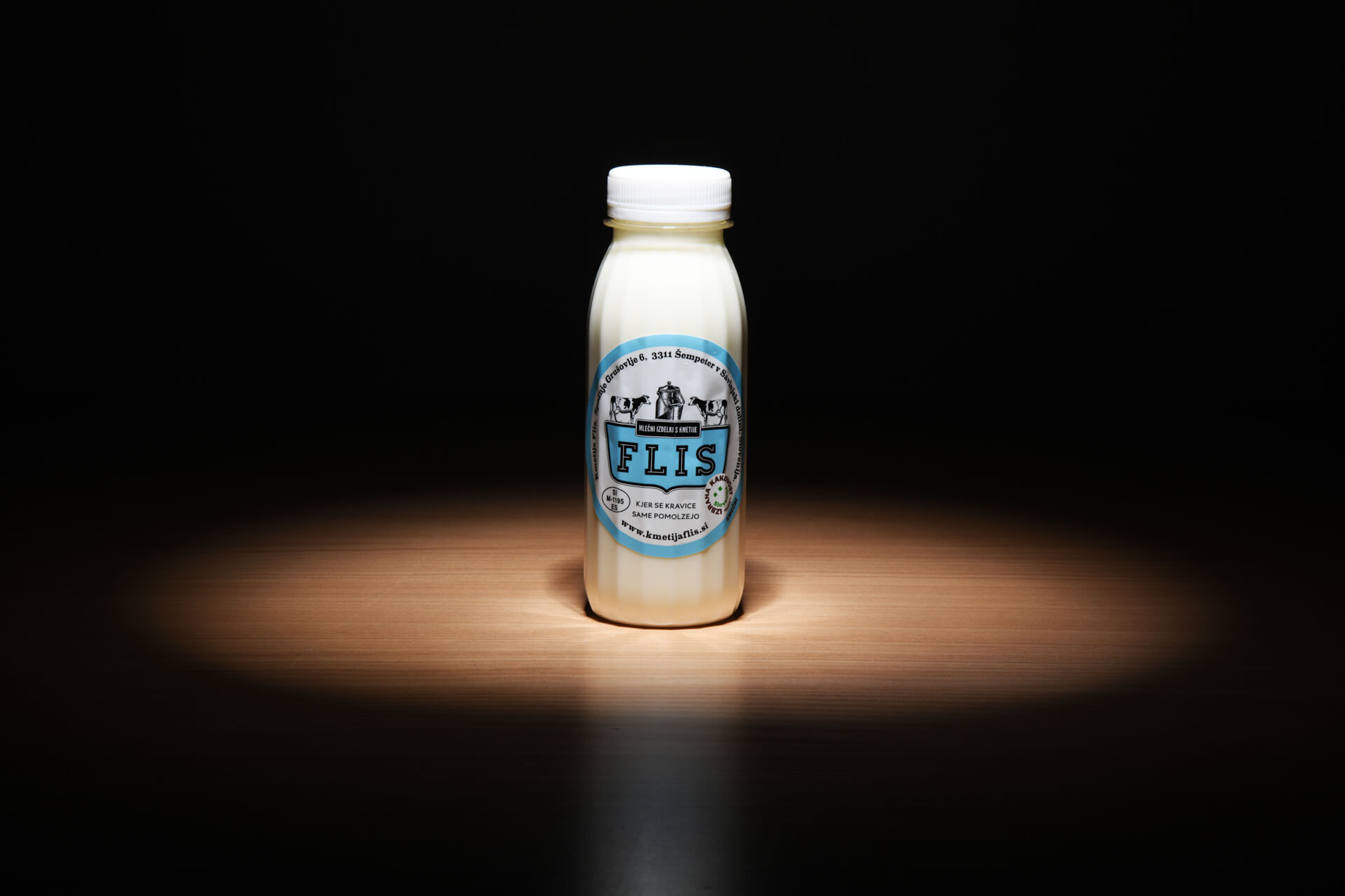 Tekoči jogurt izdelan iz polnomastnega pasteriziranega mleka polnjen v 250 ali 500 ml plastenke.